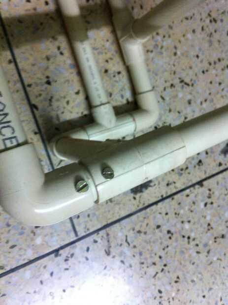 Taladrar agujeros en las juntas de tubería y fijarlos con adhesivo. He utilizado Araldite, pero eres libre de elegir cualquiera de los tuyos.