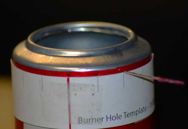 hice plantillas que hacen este paso super fácil. Descargar en el paso de "Herramientas y materiales". Simplemente Envuelva alrededor de la, luego empujar los agujeros en todas las marcas! Yo meter mis agujeros de 1/8" desde el borde superior. Cuando la cinta la plantilla a la lata, espacio lo aproximadamente 1/8" desde el borde superior de la lata. Esto asegurará que todos los agujeros de la hornilla son recto y uniformemente espaciados.