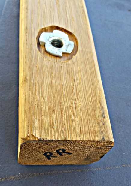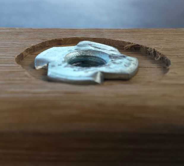 - Usé un router a hundirse en el lado externo del agujero en todos los mensajes por lo que el T-nut está al ras con la superficie del poste.