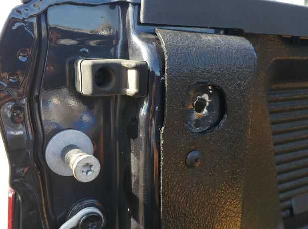 - Entonces perforado nuevamente el orificio a través de la pared de cama bed liner y el interior con un 3/8" bit.