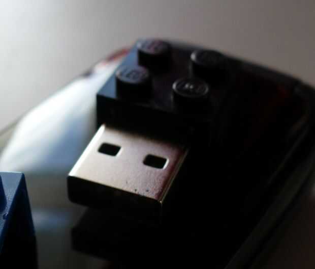 si tuviera una pistola de pegamento. Pegar el cuerpo plástico en uno de sus ladrillos, con toda la broca USB metal sobresale.