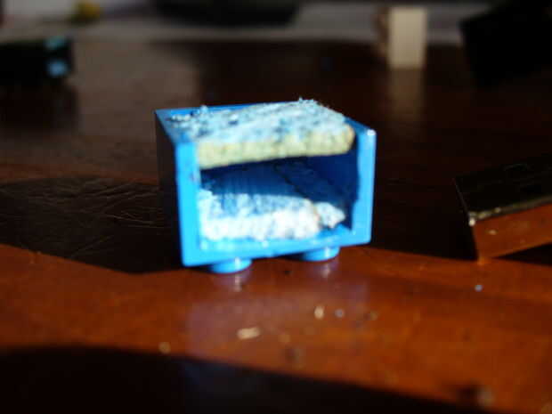 Cortar dos piezas de 1-2mm (grueso), lo suficientemente grandes como para caber en la parte superior e inferior del ladrillo, como en la imagen.