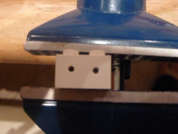 Marque y perfore dos agujeros en ambos extremos del ladrillo 5mm desde la parte inferior y 4mm de cada lado del ladrillo (ver primera foto)