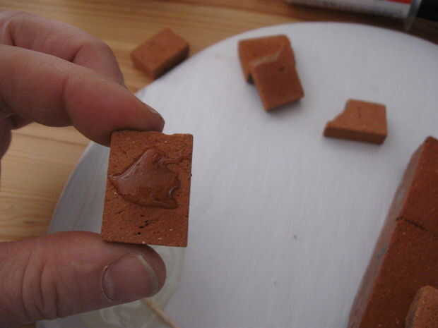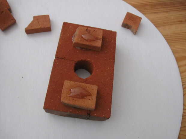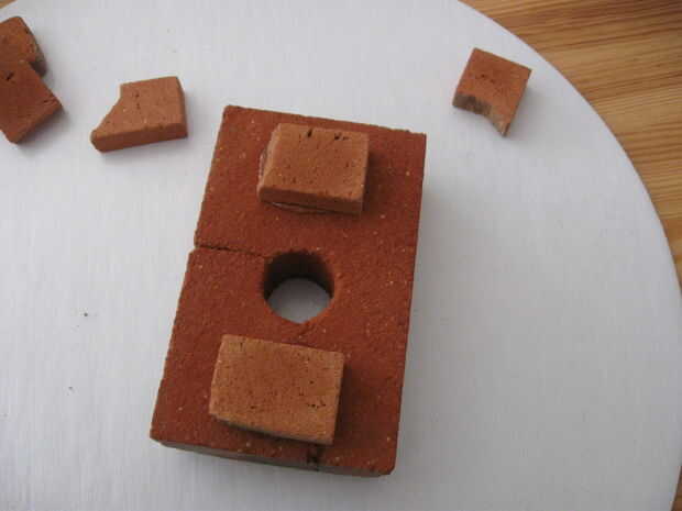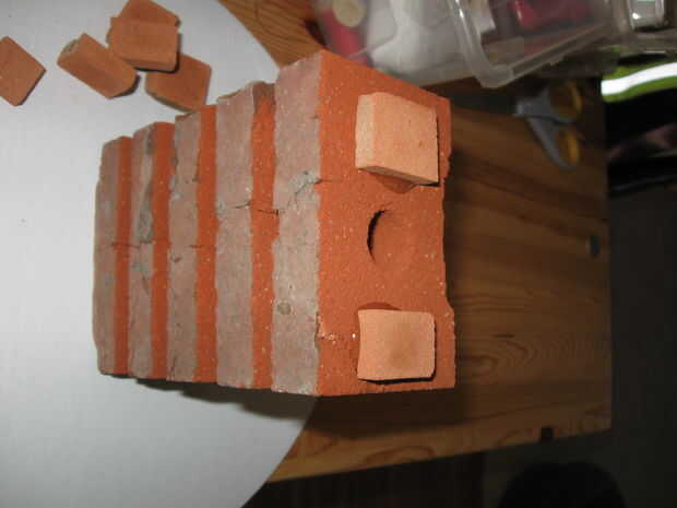 El ladrillo cortado ahora necesita reensamblarse con espaciadores que fueron cortados en el paso anterior.