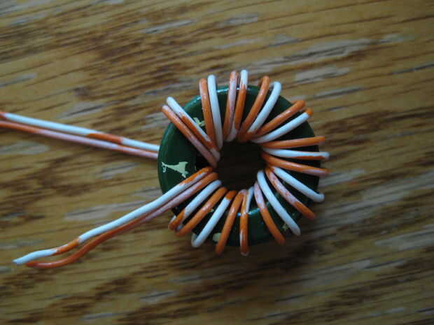 tamaños un par de estas cosas con el mismo alambre de la herida. el tipo de cable que he utilizado vino de cable ethernet cat5. me gusta porque es un cable de núcleo sólido que permanece en el lugar donde ponerlo. tengo 11 vueltas de alambre en el naranja y 13 en verde. he mirado por todo internet para encontrar la razón del número de vueltas pero no pudo encontrar una respuesta exacta, y 11 vientos es podría tardar todos lo más pequeños (naranja uno), y el verde uno acaba de poner el 13 se convierte en él de la misma longitud de alambre. la bobina naranja es la mitad (aproximadamente del tamaño de una moneda de diez centavos) del verde uno (poco más pequeño que una moneda de 50 céntimos).
