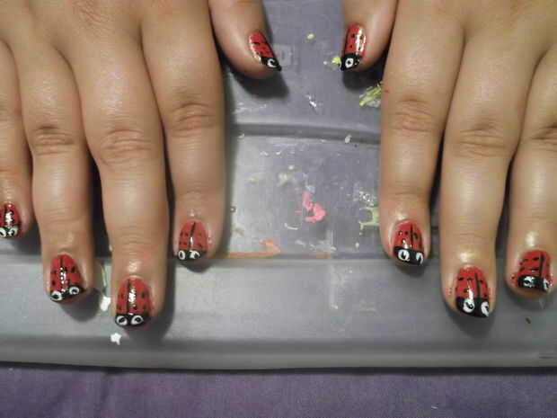 Por supuesto, esperar 30 minutos antes de aplicar un top coat! Usted puede conseguir la capa superior de LA colores por $1 Dollar Tree! La capa superior es necesaria para uñas, ya que conserva su diseño y mantiene de saltar lejos! Estas cuantas fotos siguiente son el producto final (sin tocar-lo hice en 11 por la noche!) Las dos últimas imágenes son los diseños de lady bug en uñas! Me gusta pintar las uñas mejor, porque hay más espacio para pintar! Por favor tarifa y añadir comentarios es realmente haría que mi día! ¿Como lo ves? Por favor, ¡ Suscríbete! Hay diseños mucho más por venir! ¡ Disfrute! :)