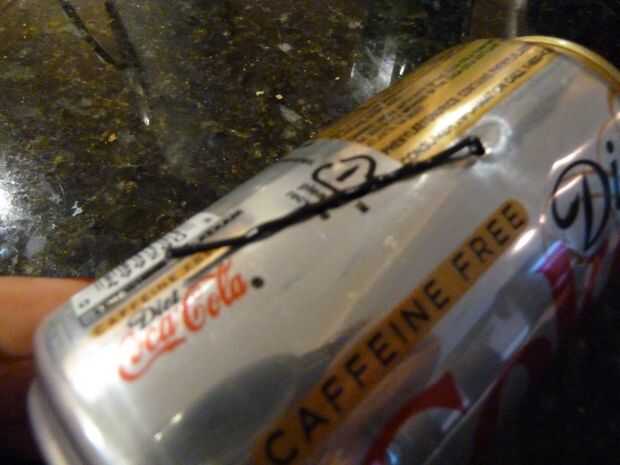 Sabía de la mirada en las latas que si rodé el pelo alrededor de la lata, no habría ninguna manera que quedaría, así es el genio que soy (soy tan no un genio) penetra los agujeros en el lado de la lata con el clavo y roscado una horquilla a través de él.