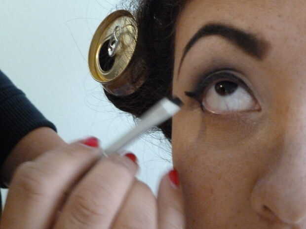 Una vez aplicada el trazador de líneas, utiliza un lápiz crema marfil reluciente y lo aplicó a las esquinas interiores del ojo. Esto aclara el ojo y también crea un poco de profundidad. Mezcla las esquinas. Puede utilizar una brocha o los dedos
