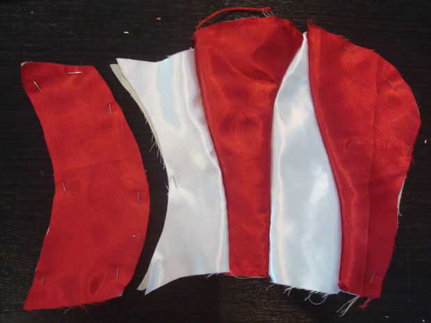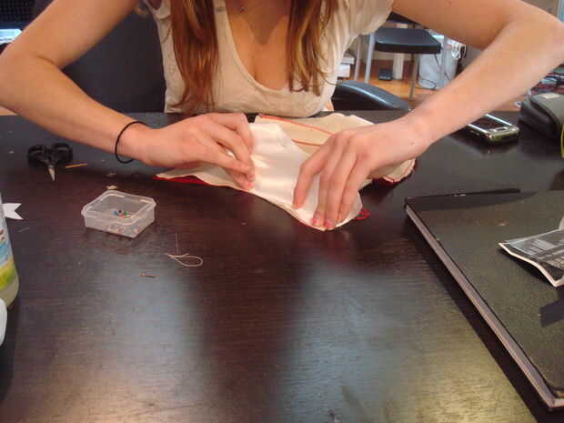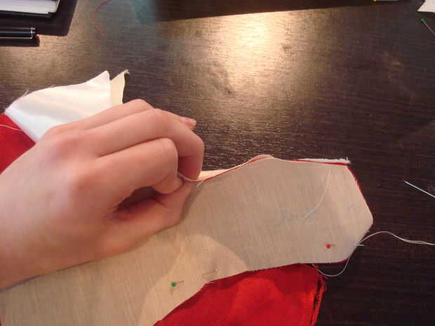 • Hilvanar las piezas de muselina en los colores correspondientes