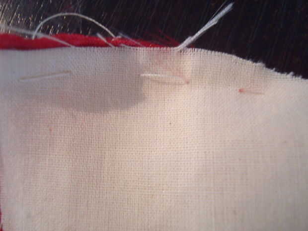 • Corte cada pequeña sección de muselina y el color apropiado (rojo o blanco).  Dejar 1/2" para el margen de costura