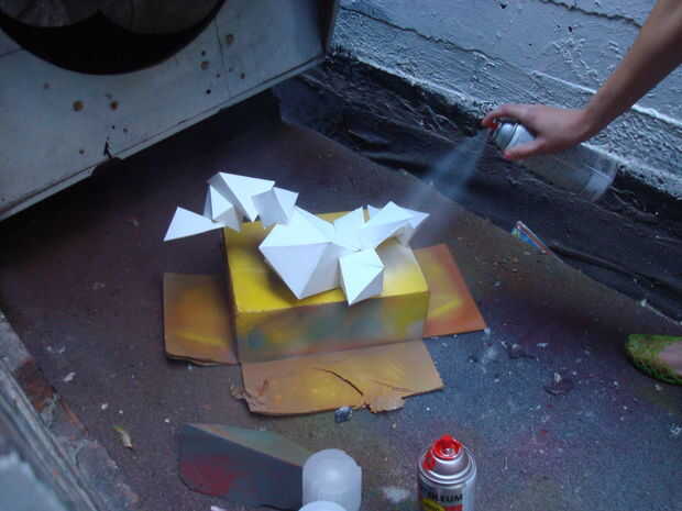 Pintura de aerosol de la escultura para que no puede ver cualquier pegamento o cinta.  Lady Gaga se viste con muchas esculturas de colores diferentes para que pueda hacer la escultura de color lo que quieres en este paso.