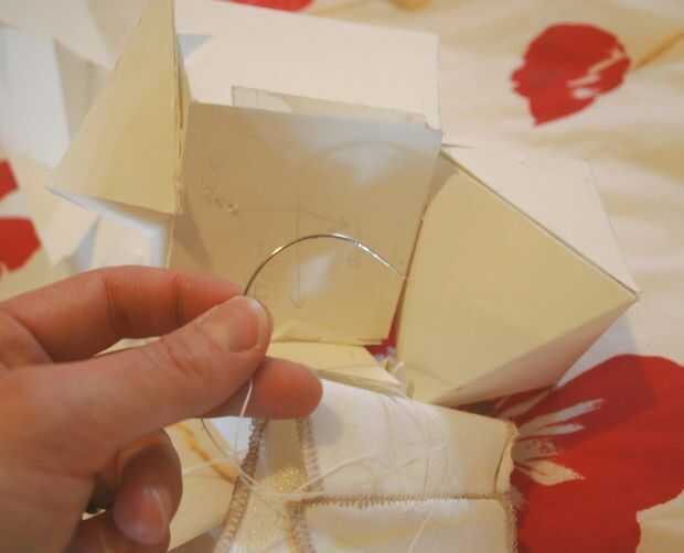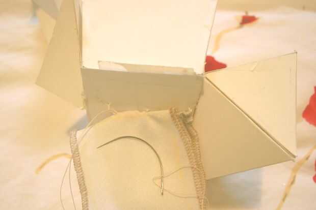Use un hilo y aguja curvada para sujetar la escultura para el traje.  Puede incluso que necesite pegar la escultura para el equipo así.