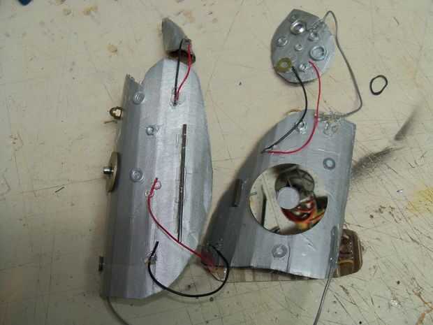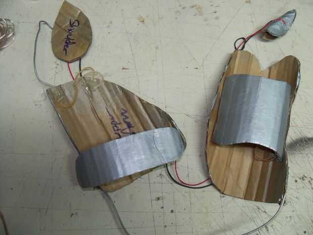 Las secciones de la parte superior del brazo y antebrazo utilizan bandas de goma en el interior para sujetar en el brazo. El pulgar se pegan simplemente sobre su pulgar. El plan original era al espíritu el hombro de goma en, pero hemos trabajado hacia fuera una manera de utilizar una longitud de alambre rígido para sujetarlo en su lugar.