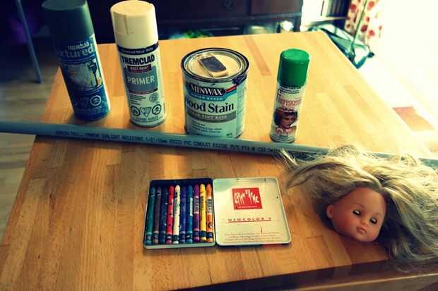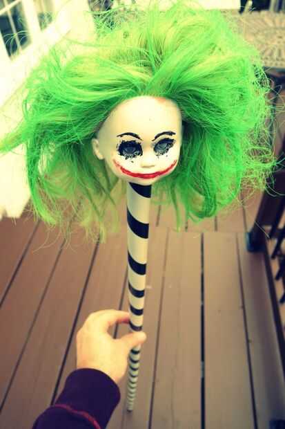 En lugar de plan 2 meses por delante con un traje demasiado complejo (pronto a ser publicado), mi esposa tuvo sólo una breve lista preparada para el gran día. Un viaje a la tienda proporciona un gran equipo, y junto con algún spray de pelo verde que casi tenía el kit completo. Pero al final del día, todos los accesorios. Rápidamente armé esta caña, y estamos muy contentos con el look creepy resultante.