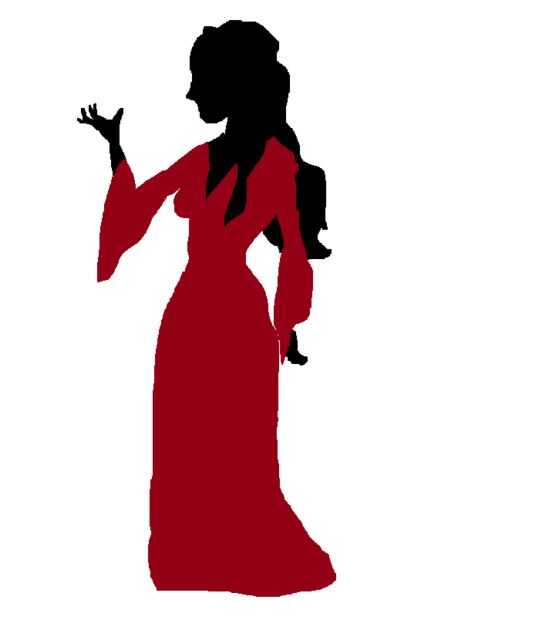 * Un vestido color escarlata profundo, largo (con el frente de V-cut)