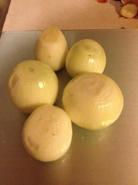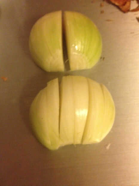 1) cortar los extremos y piel de la cebolla - ver foto 1