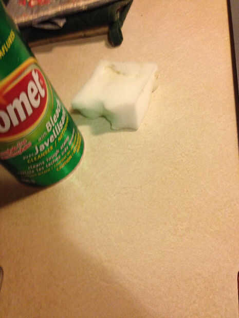Un limpiador con lejía o usando un borrador mágico sale esa mancha