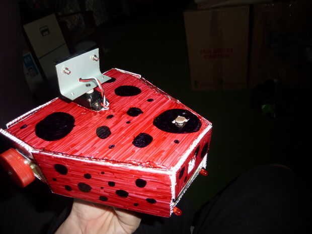 El trabajo de pintura es totalmente hasta usted, mi sobrina quería pintar como un escarabajo de la señora, eso es lo que hice. Para pintar el robot uso marcadores permanentes que puede ser otras formas de colorearlo pero encontré esto que es la forma más fácil y mejor. Darle el señora bug efecto comience con un rotulador rojo y color por todas partes. Entonces el marcador negro y dibujar al azar puntos negros tamaño en ningún orden o patrón.