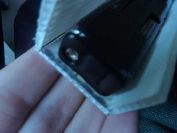 Mida la longitud de la batería de cajas luego añadir 1 cm a esta longitud y luego encuentran la altura de las cajas de baterías y añada.5 cm para la altura cortan dos pedazos de la señal de venta hacia fuera a estas dimensiones. Lugar sus dos casos de batería al lado de uno al otro en una de las tres primeras partes recortar y colocar las dos últimas piezas cortan hacia otro lado de los casos de dos luego pegamento caliente el lado carriles a la base.