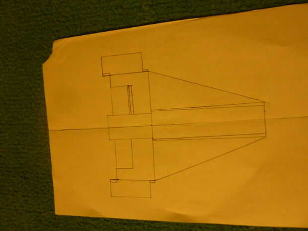Mi primer cerebro irrumpió en lo que mi forma final sería más o menos, entonces esto sacó un pedazo de papel y comenzó a llenar el dibujo con mis componentes hasta estaba feliz. Entonces hice un dibujo más detallado con una exacta proporción 1:1 asegurándose de que todo encajaba (esto tuvo varias mesas y pensar hasta el final).