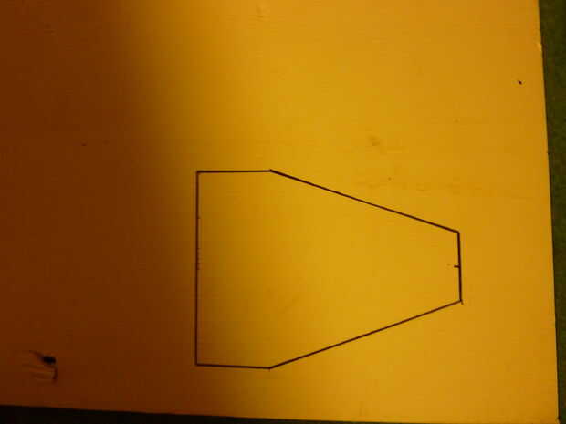 Esta plantilla fue fotocopiada luego recorta y coloca sobre la señal de venta. Entonces se traza sobre la plantilla con un marcador permanente y luego cortar con el cortador de cartón. Tres de estas piezas a cortar.