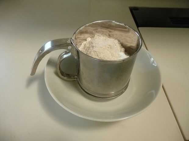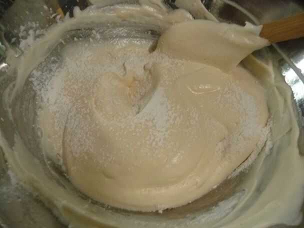 6. tamizar la harina de pastel sobre la mezcla de huevo un poco a la vez, doblar en la medida que se avanza. Es importante que incorpore la harina poco a poco y suavemente para que la masa mantiene una textura noble. Demasiado la mezcla causará a deshinchar y perder volumen, dando por resultado ladyfingers planos, poco atractivo.