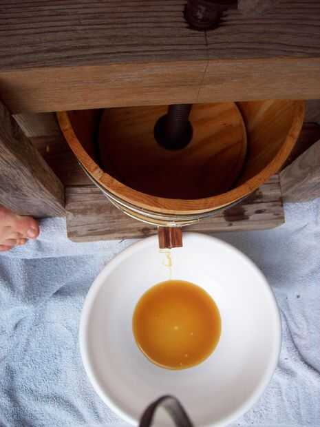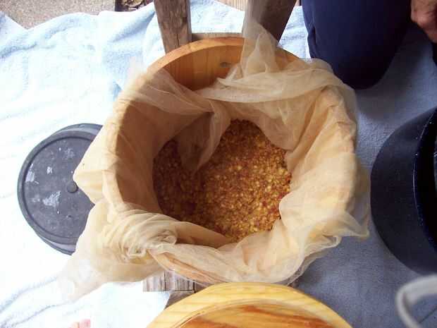 Cuando tuve listo para empezar a presionar, yo en cuartos las manzanas y triturado con una picadora de carne, que debo decir que funcionó muy bien. Compré 2 yardas de tul como la tela de la prensa; forro el cubo con él, ordeñar en varios cucharón-fulls de cero manzanas dobla el tul sobre él y presiona a. Un problema principal con este diseño que he encontrado es que puesto que hay solamente un agujero para la sidra a funcionar hacia fuera, tuve que inclinar la prensa mientras estaba apretando para sacar todo el líquido. Distinto, sin problemas, sólo deliciosa sidra dulce!