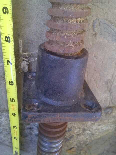 -Gran tornillo gigante de una mordaza de mesa, que había sido inusitado en el garaje de John durante décadas.