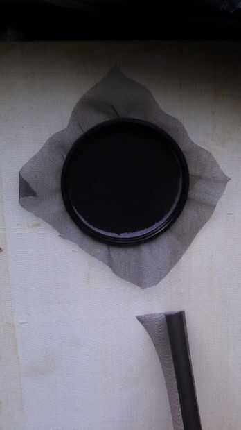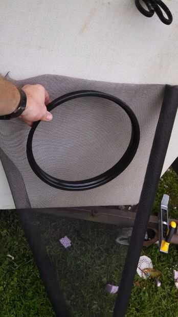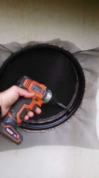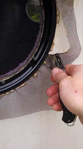 Utilizar el anillo como un patrón para cortar una sección de pantalla que es más amplia en todas las direcciones unas pocas pulgadas. Me parece que el material de fibra de vidrio de la pantalla es más fácil trabajar con.