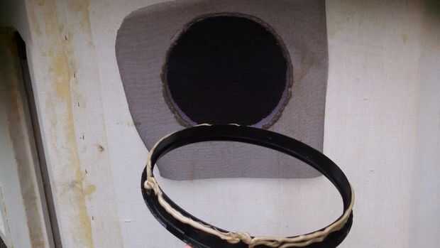 Traza la parte exterior del anillo sobre el área que desea su ventana. Cortar el círculo hacia fuera, y prueba de ajuste del anillo.