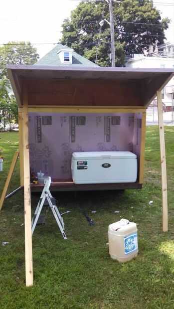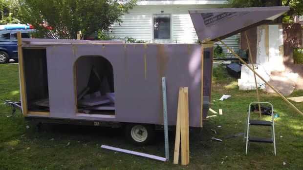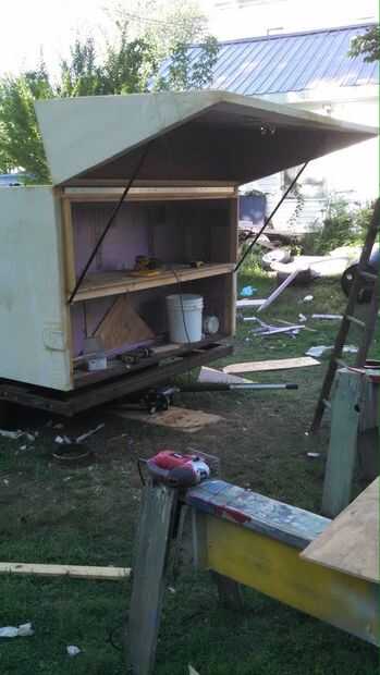Un diseño más sencillo es hacer que la puerta de la cocina con el back-end, sin embargo poner fin a una parte posterior plana no levante la tapa de cocina lo suficientemente alto para evitar golpear su cabeza en él. Constructores de extremo posterior más planos sólo que la puerta gire a los lados, pero esto le quita una de las grandes ventajas de la escotilla superior. La escotilla es un toldo instantáneo, guardando hojas, agujas y errores de caer en el área de preparación de alimentos, evitar el sol y que le permite trabajar incluso bajo la lluvia.