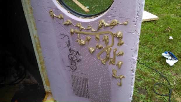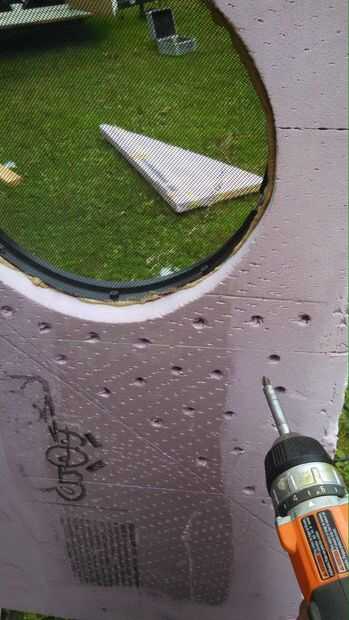 Con los agujeros de aburrido, inserte la punta de la sonda de PLpremium en el agujero y el agujero completo de la bomba que usted dejó el empuje de la punta vuelta hacia fuera. Desea que el agujero con un poco de pegamento burbujas sobre el agujero. Nada que pega a este perno"pegamento" se ancló profundamente en la espuma. Como cura el PLpremium se hincha, anclaje en la espuma.