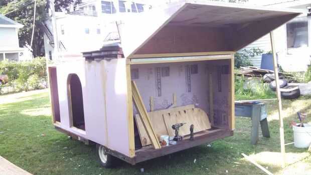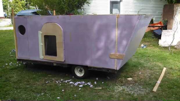 Para celebrar el cierre de la escotilla, usé dos del dibujar cierres desde el pop up camper con que empecé. He instalado las placas de madera contrachapada en la parte inferior de la puerta trasera y que empareja sobre la parte inferior cocina pared exterior, utilizando pegamento tornillos.