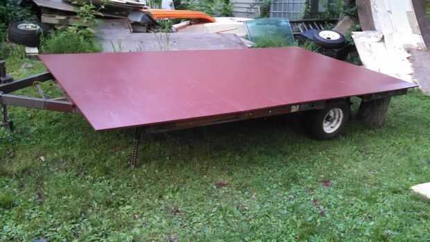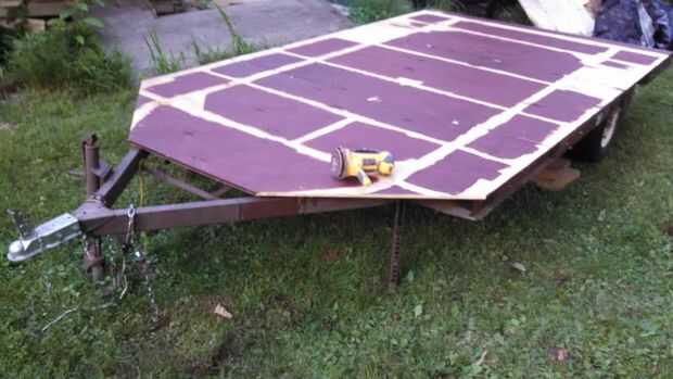Una vez curado el sellador de la cubierta, voltea la planta encima y nos dispusimos a construir, todo esto fue hecho en el bastidor del remolque, ya que hace la mejor plataforma de construcción en mi opinión.