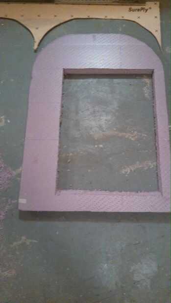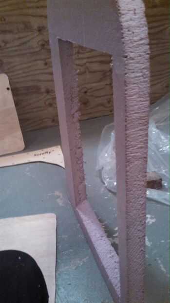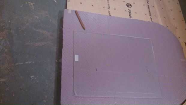 La madera contrachapada de la piel en el espacio en blanco de espuma y pin con unos tornillos. localizar el agujero de la ventana dan a la espuma y quitar la cara de la madera contrachapada. Ponen el plexiglás sobre las líneas de trazado en la espuma y centrarlo, luego trace el plexiglás. Ahora toma un trozo de madera contrachapada de 1/4", coloque el borde de la reposa verticalmente y traza el borde exterior del lado de adelante y atrás. Esto le dará las dimensiones que usted necesita para el agujero de la ventana y el marco en la espuma. Añadir 3 pulgadas a la parte superior del agujero de la ventana de la espuma para flujo de aire.