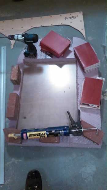Pegar la cara de la madera contrachapada a la puerta de espuma en blanco con pegamento del gorila, encontrar una línea delgada de bucle que sube en zig zag de la madera funciona mejor. Utilice la herramienta de eliminación de fondo de pantalla para perforar la superficie de la espuma se pega. Mientras te muestro la pantalla de la ventana va entre la espuma y la madera contrachapada, esto resultó para ser un error. la pantalla permite correr abajo de agua en su interior y cuando uno de mis hijos rompió la pantalla tuve que cortar todo. En su lugar iré añadiendo la pantalla más adelante.