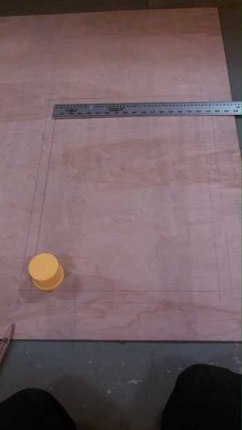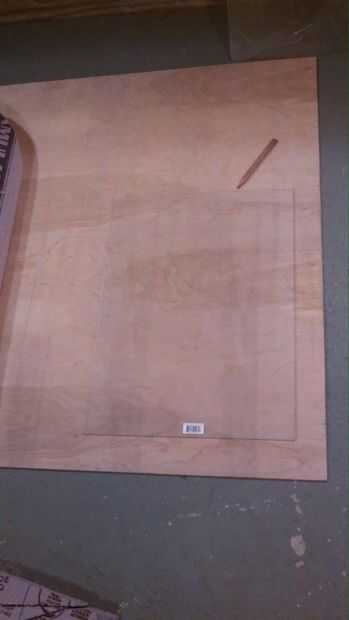 Alrededor aquí Home depot las poblaciones de plexiglás que es casi 1/4" de espesor en un tamaño de corte 18 x 24" para alrededor de $10, esta será la parte más costosa de una ventana de wiley. línea de plexiglás con las marcas que se establece para las dimensiones de la ventana.