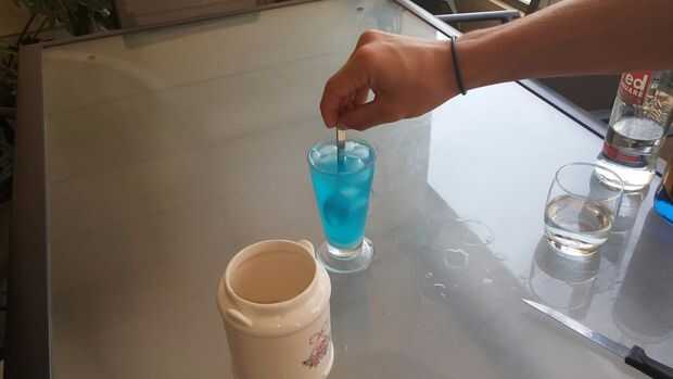 3) Añadir 30 ml de Curazao azul (1 onza).