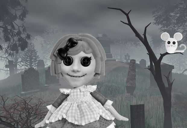 Para hacer esta foto editar incluso espeluznante, me decidí a hacer mi Catieloopsy blanco y negro con ojos brillantes. Entonces le pegué en algunos antecedentes escalofriantes. Pasa el cursor sobre cada imagen para los pasos lograr cada aspecto. Disfrutar Lalaloopsying de usted y otros!