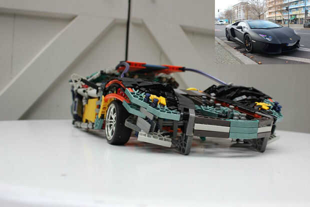 Como siempre empecé con la parte delantera del coche. Está diseñado con una capucha de convexed ligeramente por encima de las ruedas, tal como se puede ver en la foto de la vida real del Aventador. Como espero que usted ha notado he construyo en bonitos detalles (como se indica en las fotos) como los faros, el sistema de toma de aire frontal y un trabajo totalmente dirección mecanismo bajo el capó.