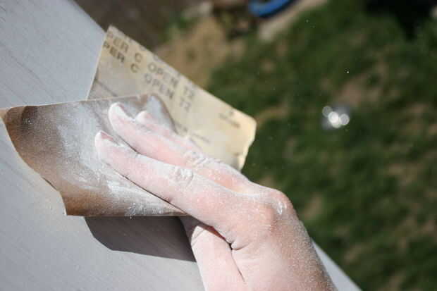 Uno de los principales motivos que elegí la marca de pintura que lo hice fue porque venía con instrucciones de angustia. Se dice que deja la pintura secar durante dos horas antes de la angustia, por lo que es lo que hice. Fui la pintura con lija de grano 120 y trató de ser al azar, pero incluso con la angustia.