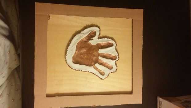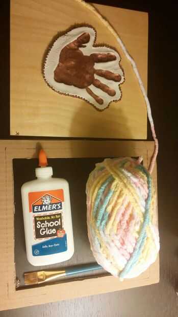todo lo que necesitamos es 1. hilado 2. pegamento de la escuela 3. pincel 4. moldeado en cualquier arcilla de handprint 5. cartulina / cartón para la base 6. cartón para hacer el marco