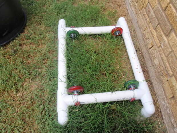 Tuve todas las piezas del rodillo blade ruedas y scooters antiguas también una compra fácil. El PVC fue de la tienda de hardware. Costo total fue de $44,00