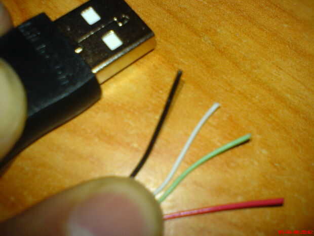 Utilicé el puerto USb de mi laptop como fuente de energía. Para ello yo corte el cable de mi viejo teclado USB y encontrar el negro e hilos rojos en él.