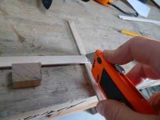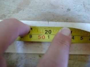 por lo que marca las longitudes, usa la escuadra para obtener una línea de ángulo recto, luego cortar con el cuchillo.