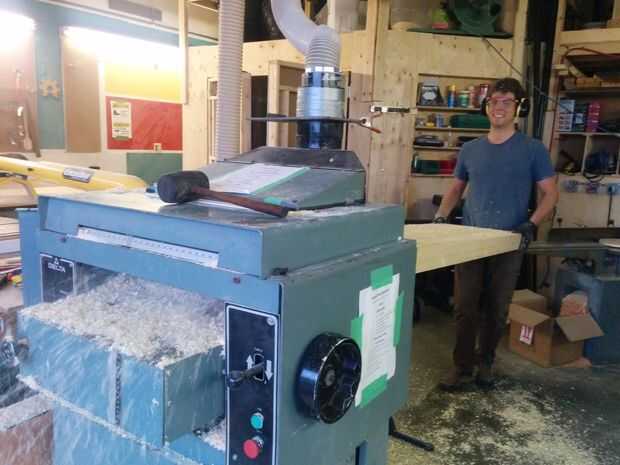 Hay muchas opciones para aplanar la superficie de esta Alba. En nuestro local makerspace (Yukonstruct), tenemos un cepillo de energía de 20 pulgadas, así que he elegido para utilizarlo. Siempre puede pasar una eternidad colgar cepillado, usar un cepillo de mano eléctrica o incluso una configuración de la plantilla del router. Averiguar su forma, pero trate de mantenerse alejado de mano cepillado... acaba de decir.