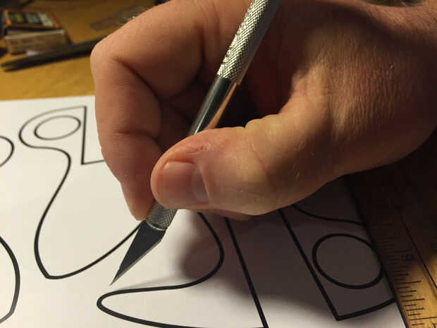 He intentado transferir el diseño a la madera oscura (cumaru) con lápiz y era demasiado difícil de ver para cortar con precisión. Solía la plantilla como una plantilla y spray de imprimación sobre él a la madera para obtener mis líneas de corte.
