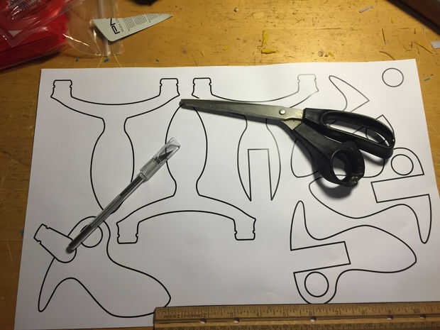 Sacar su diseño sin embargo prefiere, en la computadora, a mano, lo que tienes. El diseño debe ser simétrico, por lo menos en términos del tamaño de la horquilla y su distancia desde el centro del marco. Una vez que se haya decidido por un diseño que te gusta, imprimirlo y recortar con unas tijeras o un x-acto para utilizar como plantilla.