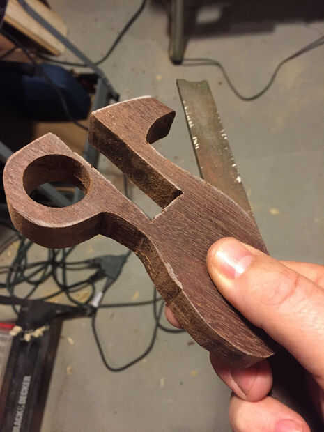 Había visto un gran muchos diseños diferentes y muy acertados para hondas en línea y quería llegar a uno que era mío. Este tipo de diseño de knuckle-duster parecía como si podría no sólo ser ergonómico y diferentes, pero tienen la finalidad de tener una especie de "cerradura positiva" en la empuñadura. Con el dedo por el agujero, si ha perdido su puño en el marco en el dibujo completo lo no arrojado a usted. Seguridad primero!