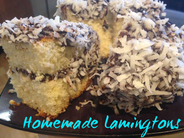 Lamingtons son básicamente sólo un bizcocho (o torta de la mantequilla) que es cortar en cuadrados, cubierto en chocolate envuelto en coco rallado/picado y refrigerado. Son simples, no requieren materiales costosos y sabor increíbles.